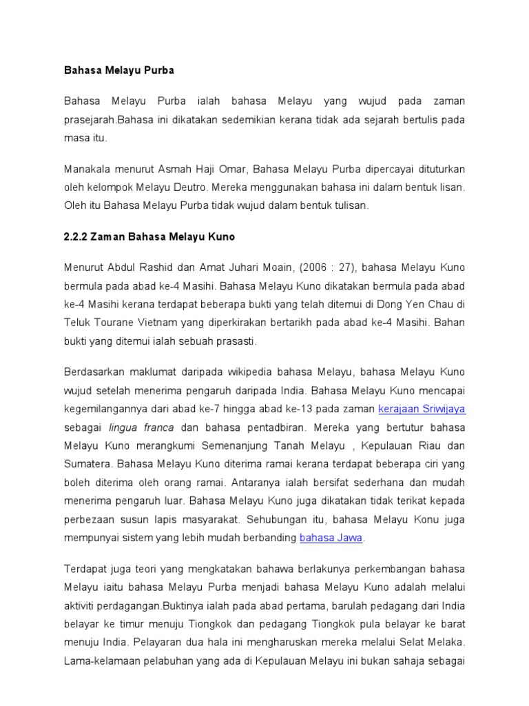KRONOLOGI BAHASA MELAYU BAHASA MELAYU PURBA BAHASA MELAYU KUNO BAHASA MELAYU KLASIK BAHASA.